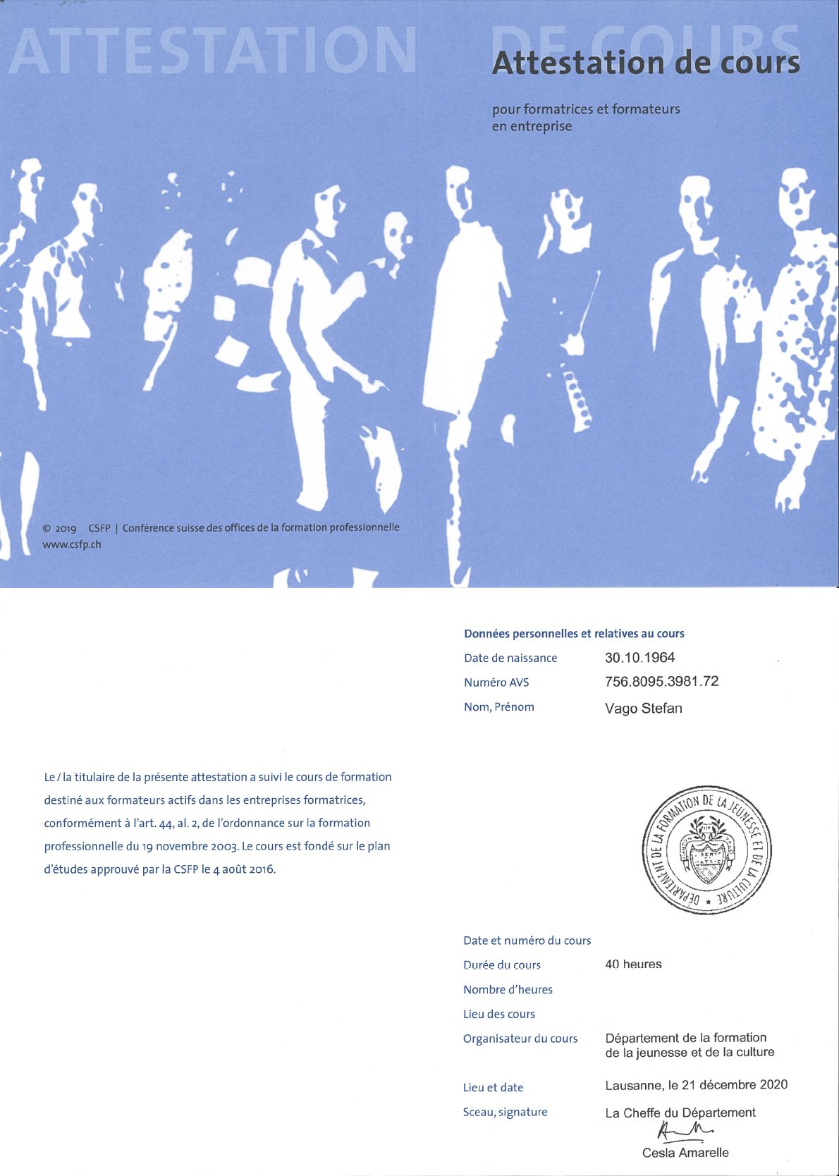 Je suis certifié Formateur d'adultes (attestation CFFE)